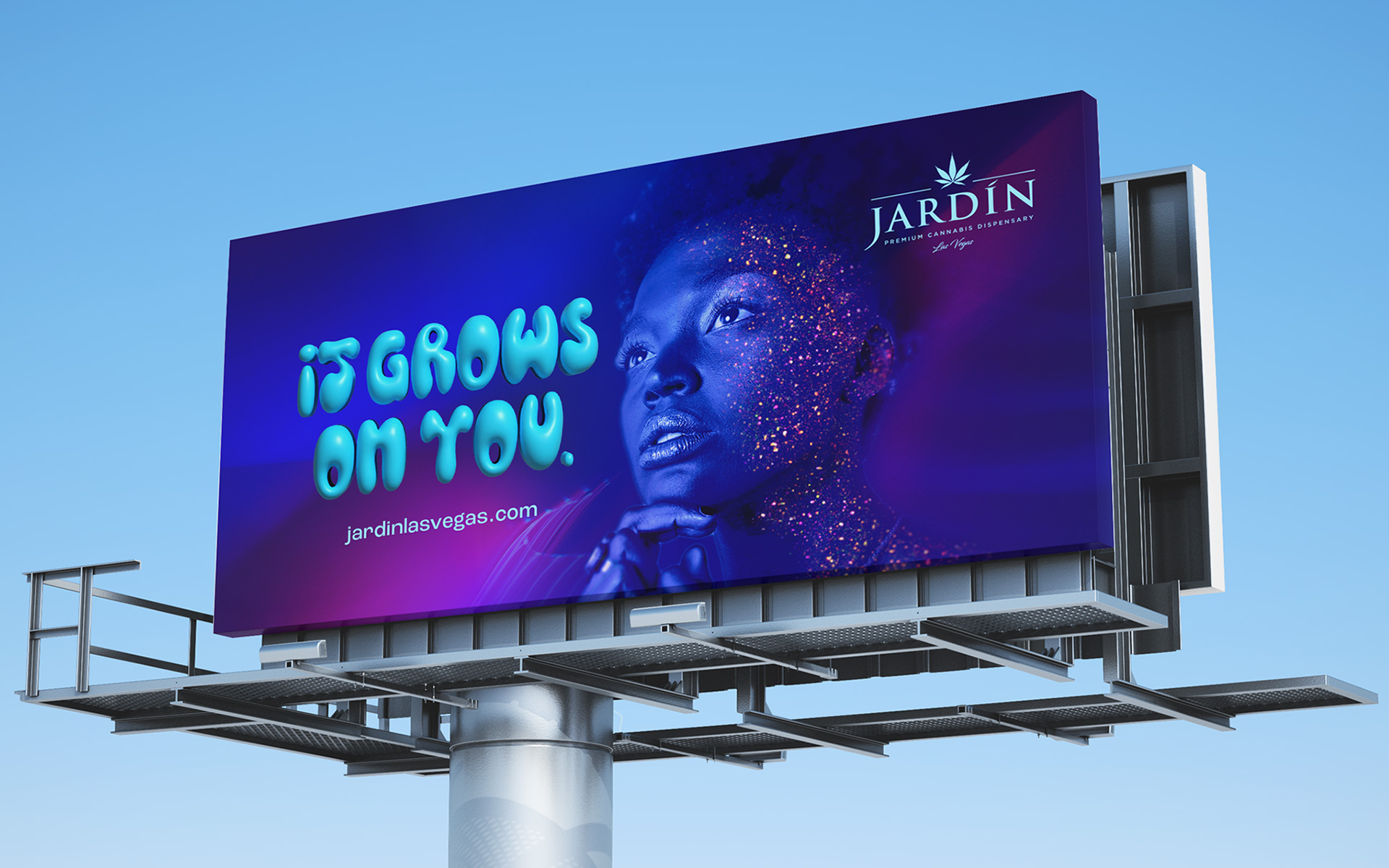 We designed a bold and visually captivating billboard campaign for Jardin, a premium dispensary in Las Vegas, to reflect its upscale vibe and celebrate its deep roots in the local community. Strategically placed along high-traffic corridors near the Strip and convention centers, the billboards featured vibrant, artistic imagery and playful yet sophisticated messaging—designed to intrigue tourists and engage locals. The campaign emphasized Jardin’s luxurious experience and top-tier product offerings, positioning the brand as the go-to destination for cannabis connoisseurs in Las Vegas.